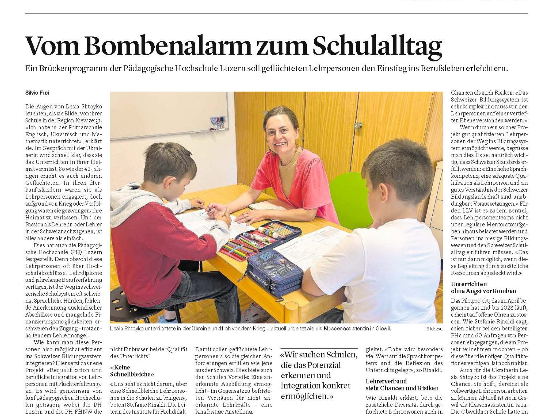 Medienbericht – Luzerner Zeitung: Projekt «Requalifikation und berufliche Integration von Lehrpersonen mit Fluchterfahrung»