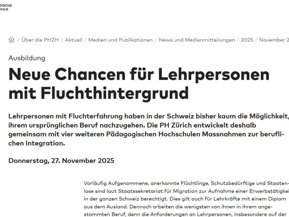 Medienbericht – PH Zürich: Neue Chancen für Lehrpersonen mit Fluchthintergrund